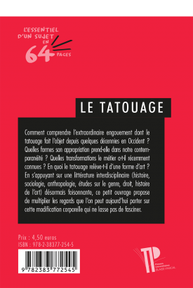 Comment comprendre l’extraordinaire engouement dont le tatouage fait l’objet depuis quelques décennies en Occident ? Quelles formes son appropriation prend-elle dans notre contemporanéité ? Quelles transformations le métier a-t-il récemment connues ? En quoi le tatouage relève-t-il d’une forme d’art ? En s’appuyant sur une littérature interdisciplinaire (histoire, sociologie, anthropologie, études sur le genre, droit, histoire de l’art) désormais foisonnante, ce petit ouvrage propose de multiplier les regards que l’on peut aujourd’hui porter sur cette modification corporelle qui ne lasse pas de fasciner.