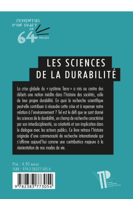 La crise globale du « système Terre » a mis au centre des débats une notion inédite dans l’histoire des sociétés, celle de leur propre durabilité. En quoi la recherche scientifique peut-elle contribuer à résoudre cette crise et à repenser notre relation à l’environnement ? Tel est le défi que se sont donné les sciences de la durabilité, un champ de recherche caractérisé par son interdisciplinarité, sa créativité et son implication dans le dialogue avec les acteurs publics. Ce livre retrace l’histoire originale d’une communauté de recherche internationale qui s’affirme aujourd’hui comme une contributrice majeure à la réorientation de nos modes de vie.