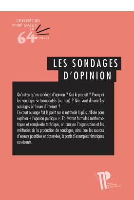Qu'est-ce qu'un sondage d’opinion ? Qui le produit ? Pourquoi les sondages se trompent-ils (ou non) ? Que vont devenir les sondages à l’heure d’Internet ? Ce court ouvrage fait le point sur la méthode la plus utilisée pour explorer « l’opinion publique ». En évitant formules mathématiques et complexité technique, on analyse l’organisation et les méthodes de la production de sondages, ainsi que les sources d’erreurs possibles et observées, à partir d’exemples historiques ou récents.