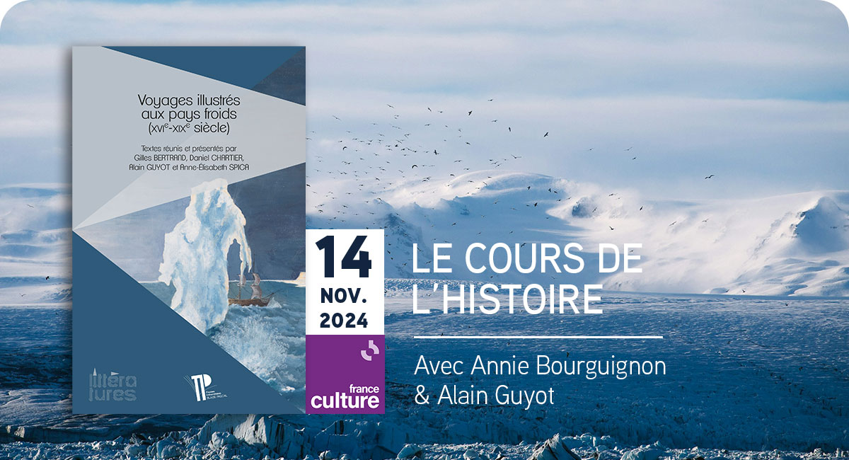Annie Bourguignon, professeure émérite en études scandinaves à l'Université de Lorraine, et Alain Guyot, professeur de littérature française du XIXe siècle à l'Université de Lorraine, tous deux contributeurs de l'ouvrage Voyages illustrés aux pays froids (XVIe-XIXe siècle) paru dans notre collection "Littératures", seront les invités le 14 novembre d'un passionnant numéro dédié aux représentations et aux imaginaires dans la littérature et dans les arts liés à ces expéditions.