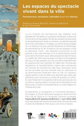 Là où l'histoire de l'architecture des théâtres s’est globalement focalisée sur quelques archétypes inspirés de monuments remarquables, l’étude des espaces de spectacle et de divertissement révèle a contrario une grande diversité de formes, d’échelles et d’usages. Le temps long privilégié, du XVIIIe siècle à nos jours, permet d’observer et d’interroger les permanences et les mutations de ces espaces voués au spectacle vivant ; des analyses circonscrites à une période, à des villes précises ou à un phénomène culturel particulier enrichissent aussi cette perspective diachronique. La variété de l’offre spectaculaire contribue à l’émergence des lieux et des espaces qu’il est possible d’appréhender en questionnant leur hybridité.
