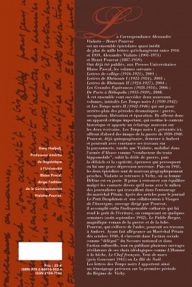 La Correspondance Alexandre Vialatte-Henri Pourrat est un ensemble épistolaire quasi inédit de plus de mille lettres qu'échangèrent entre 1916 et 1959, Alexandre Vialatte (1901-1971) et Henri Pourrat (1887-1959). Ont déjà été publiés, aux Presses universitaires Blaise-Pascal, les volumes suivants : Lettres de collège (1916-1921), Lettres de Rhénanie I (1922-1924), Lettres de Rhénanie II (1924-1927), Les Grandes Espérances (1928-1934), De Paris à Héliopolis (1935-1939). À cet ensemble succèdent aujourd'hui Les Temps noirs I (1939-1942) et prochainement Les Temps noirs II (1942-1946), qui ont pour arrière-plan des périodes dramatiques : guerre, occupation, libération et épuration. Ils offrent donc un appareil critique important, qui restitue le contexte historique et apporte un éclairage nouveau sur les deux écrivains.
