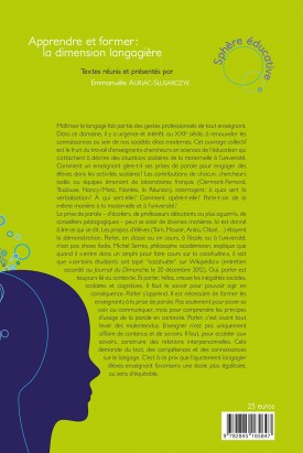 Cet ouvrage est le fruit du travail d'enseignants-chercheurs en sciences de l’éducation qui s’attachent à décrire des situations scolaires de la maternelle à l’université. Comment un enseignant gère-t-il ses prises de parole pour engager des élèves dans les activités scolaires ? À quoi et à qui sert la verbalisation ? Parle-t-on de la même manière en maternelle et à l’université ? La prise de parole – d’écoliers, de professeurs débutants ou plus aguerris, etc. – peut se saisir de diverses manières. Parler est toujours lié au contexte et creuse les inégalités sociales, scolaires, cognitives. Il est nécessaire de former les enseignants à la prise de parole car parler, c’est avant tout lever des malentendus.