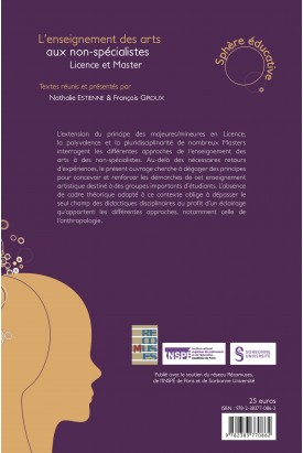 L'extension du principe des majeures/mineures en Licence, la polyvalence et la pluridisciplinarité de nombreux Masters interrogent les différentes approches de l’enseignement des arts à des non-spécialistes. Au-delà des nécessaires retours d’expériences, le présent ouvrage cherche à dégager des principes pour concevoir et renforcer les démarches de cet enseignement artistique destiné à des groupes importants d’étudiants. L’absence de cadre théorique adapté à ce contexte oblige à dépasser le seul champ des didactiques disciplinaires au profit d’un éclairage qu’apportent les différentes approches, notamment celle de l’anthropologie.