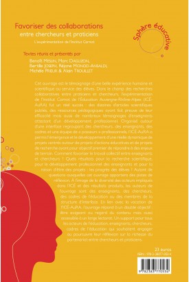 Cet ouvrage est le témoignage d'une belle expérience humaine et scientifique au service des élèves. Dans le champ des recherches collaboratives entre praticiens et chercheurs, l’expérimentation de l’Institut Carnot de l’Éducation Auvergne-Rhône-Alpes (ICÉ-AuRA) fut un réel succès : des dizaines d’articles scientifiques publiés, des ressources pédagogiques ayant fait preuve de leurefficacité mais aussi de nombreux témoignages d’enseignants attestant d’un développement professionnel.