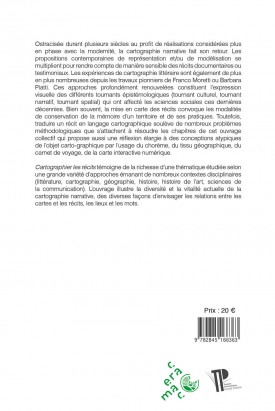 Ostracisée durant plusieurs siècles au profit de réalisations considérées plus en phase avec la modernité, la cartographie narrative fait son retour. Les propositions contemporaines de représentation et/ou de modélisation se multiplient pour rendre compte de manière sensible des récits documentaires ou testimoniaux. Les expériences de cartographie littéraire sont également de plus en plus nombreuses depuis les travaux pionniers de Franco Moretti ou Barbara Piatti. Ces approches profondément renouvelées constituent l'expression visuelle des différents tournants épistémologiques (tournant culturel, tournant narratif, tournant spatial) qui ont affecté les sciences sociales ces dernières décennies. Bien souvent, la mise en carte des récits convoque les modalités de conservation de la mémoire d’un territoire et de ses pratiques. Toutefois, traduire un récit en langage cartographique soulève de nombreux problèmes méthodologiques que s’attachent à résoudre les chapitres de cet ouvrage collectif qui propose aussi une réflexion élargie à des conceptions atypiques de l’objet cartographique par l’usage du chorème, du tissu géographique, du carnet de voyage, de la carte interactive numérique