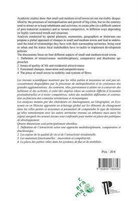 Academic studies show that small and medium-sized towns are not inevitably disqualified by the processes of metropolisation and growth of big cities, but on the contrary tend to attract or to keep inhabitants and activities, to create jobs (in a difficult context of post-industrial economy) and to remain competitive, in different ways depending on highly contrasted trends and situations.