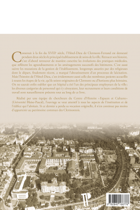 Construit à la fin du XVIIIe siècle, l'Hôtel-Dieu de Clermont-Ferrand est demeuré pendant deux siècles le principal établissement de soins de la ville. Retracer son histoire, c'est d'abord retrouver de manière concrète les évolutions des pratiques médicales, que reflètent les agrandissements et les aménagements successifs des bâtiments. C’est aussi suivre les mutations de la gestion de l’établissement, longtemps assurées par des religieuses dont le départ, finalement récent, a marqué l’aboutissement d’un processus de laïcisation.