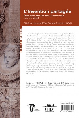 Cet ouvrage collectif, qui rassemble vingt et un textes de chercheurs confirmés et de doctorants prometteurs, explore une part trop fréquemment restée dans l'ombre de l'histoire de l’art : la responsabilité plurielle de l’aspect des œuvres d’art visuel ou d’arts décoratifs, ou « invention partagée », du XIIIe au XXIe siècle. Davantage que création au sens de mise en œuvre matérielle d’un projet d’artiste, cette notion recouvre une dynamique de l’invention, suscitée collectivement et à laquelle participent artistes, ouvriers, commanditaires et directeurs artistiques, sans oublier le hasard, acteur inévitable dans cette chorégraphie.