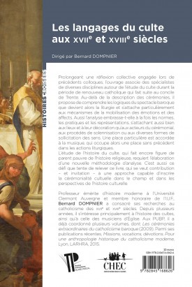 Prolongeant une réflexion collective engagée lors de précédents colloques, l'ouvrage associe des spécialistes de diverses disciplines autour de l'étude du culte durant la période de renouveau catholique qui fait suite au concile de Trente. Au-delà de la description des cérémonies, il propose de comprendre les logiques du spectacle baroque que devient alors la liturgie et s’attache particulièrement aux mécanismes de la mobilisation des émotions et des affects. Aussi l’analyse embrasse-t-elle à la fois les normes, les pratiques et les représentations, s’attachant aussi bien aux lieux et à leur décoration qu’aux acteurs du cérémonial, aux procédés de solennisation ou aux diverses formes de sollicitation des sens. Une place particulière est accordée à la musique, qui occupe alors une place sans précédent dans les actions liturgiques.