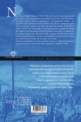 Né à Riom, Gilbert Romme (1750-1795) est à la fois une personnalité auvergnate attachante et une grande figure nationale de la Révolution française, dont la riche correspondance – très largement inédite – est dispersée entre plusieurs fonds à travers l'Europe. Les lettres proposées dans ce premier volume sont celles du temps des études de Romme à Paris (1174-1779). D'un côté, la découverte de la capitale du temps des Lumières par un jeune provincial pauvre ; en retour, le tableau de la société riomoise par des amis restés au pays.