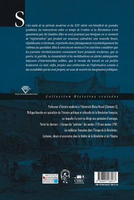 Si les nuits de la période moderne et du XIXe siècle ont bénéficié de grandes synthèses, les interactions entre ce temps de l'ombre et la Révolution n'ont quasiment pas été étudiées. Elles ne sont pourtant pas bénignes en ce moment de « régénération » qui produit un nouveau calendrier, une nouvelle heure, républicaine et décimale, et perturbe donc physiquement et symboliquement les rythmes du quotidien. Elles le sont encore moins si l’on considère que les journées révolutionnaires connaissent leurs pendants nocturnes, que la guerre, la guérilla, la clandestinité et les mobilisations imposent d’interminables veillées, que le monde du travail en est parfois bouleversé. La nuit, enfin, propice aux cérémonies de l’information comme à des sociabilités qui lui sont propres, ne cesse de nourrir les imaginaires politiques.