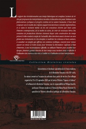Le rapport des révolutionnaires aux temps historiques est complexe. Lecteurs de récits qui proposent des interprétations morales et éducatives du passé, hésitant entre phénomènes cycliques et progrès continu de la nature humaine, il leur faut composer avec le mythe des origines auquel renvoient leurs volontés régénératrices, et ce dans le moment même où ils ont conscience d'écrire par leurs actes l'histoire contemporaine, de la mettre en scène, de créer de nouveaux héros. Des centaines de productions diverses viennent étayer cette construction du temps présent. Si elles rendent compte de l’actualité, elles cherchent aussi à donner un sens global aux événements et à les dompter, à maîtriser les violences et leurs auteurs, à canaliser un peuple qui affirme son existence politique, souvent pour mieux assurer un retour à l’ordre social, pour « terminer la Révolution ». Aspirant à l’état d’historien, à une reconnaissance officielle, ou utilisant l’histoire pour accabler leur époque, plusieurs grands témoins de leur temps nous invitent ainsi à réfléchir à l’utilisation des sources et du récit, à l’utilité et à l’utilisation de leur interprétation.