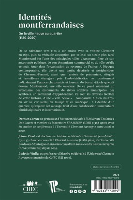 De sa naissance vers 1120 à son union avec sa voisine Clermont en 1630, puis sa véritable absorption par celle-ci un siècle plus tard, Montferrand fut l'une des principales villes d’Auvergne, fière de son autonomie politique, de son dynamisme commercial et du rôle qu’elle estimait jouer dans l’organisation du royaume de France. À l’époque contemporaine, elle devint une partie, délaissée et périphérique, de Clermont-Ferrand, avant que l’arrivée de prisonniers, réfugiés et travailleurs étrangers, puis l’industrialisation ne transforment radicalement l’espace clermontois et fassent, du bourg viticole qu’était devenu Montferrand, une ville ouvrière. De ce passé subsistent un urbanisme, des monuments, de riches archives municipales, des symboles, un sentiment d’appartenance. Ce sont les diverses facettes de cette histoire, d’une « ville neuve » – comparable à bien d’autres, du XIIe au XVIe siècle, en Europe et en Amérique – à l’identité d’un quartier, qu’explore cet ouvrage, fruit d’une collaboration universitaire pluridisciplinaire et internationale.