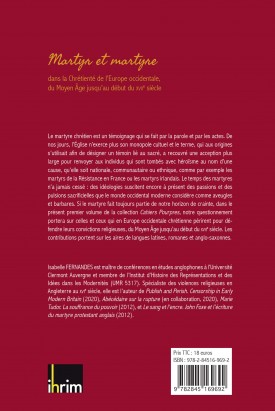 Si le martyre fait toujours partie de notre horizon de crainte, dans le présent premier volume de la collection Cahiers Pourpres, notre questionnement portera sur celles et ceux qui en Europe occidentale chrétienne périrent pour défendre leurs convictions religieuses, du Moyen Âge jusqu’au début du XVIIe siècle. Les contributions portent sur les aires de langues latines, romanes et anglo-saxonnes.