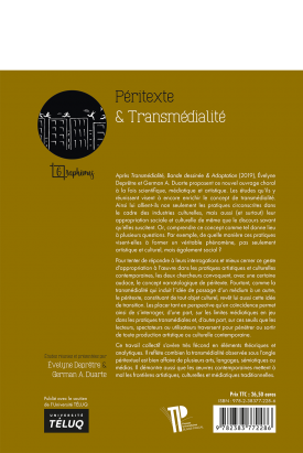 Pour tenter de répondre à leurs interrogations et mieux cerner ce geste d’appropriation à l’œuvre dans les pratiques artistiques et culturelles contemporaines, les deux chercheurs convoquent, avec une certaine audace, le concept narratologique de péritexte. Pourtant, comme la transmédialité qui induit l’idée de passage d’un médium à un autre, le péritexte, constituant de tout objet culturel, revêt lui aussi cette idée de transition. Les placer tant en perspective qu’en coïncidence permet ainsi de s’interroger, d’une part, sur les limites médiatiques en jeu dans les pratiques transmédiales, et, d’autre part, sur ces seuils que les lecteurs, spectateurs ou utilisateurs traversent pour pénétrer ou sortir de toute production artistique ou culturelle contemporaine.