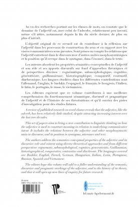 Les auteurs abordent les propriétés sémantico-conceptuelles de l’adjectif et son rôle et ses apports discursifs sur fond d’approches théoriques et de perspectives diverses : cognématique, submorphologique, cognitive, générativiste, guillaumienne, historiographique, comparatif, contrastif, diachronique. Les langues étudiées dans les différentes contributions sont l’allemand, l’anglais, le bachkir, l’espagnol, le français, le hongrois, l’italien, le latin, le portugais, le russe, le vietnamien.