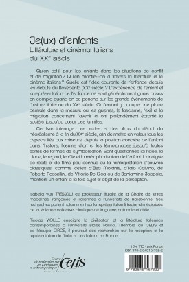 Ce livre interroge des textes et des films du début du néoréalisme à la fin du XXe siècle, afin de mettre en valeur tous les aspects liés aux mineurs, depuis la position concrète de l’enfant dans l’histoire, l’œuvre d’art et les témoignages jusqu’à toutes sortes de formes de symbolisation. Sont questionnés ici l’idée, la place, le regard, le rôle et la métaphorisation de l’enfant. L’analyse de récits et de films peu connus ou la réinterprétation d’œuvres classiques, comme celles d’Elsa Morante, d’Italo Calvino, de Roberto Rossellini, de Vittorio De Sica ou de Beniamino Joppolo, montrent un enfant à la fois sujet et objet de la perception.