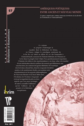 Ce volume se propose d'interroger la manière dont la littérature de fiction, en France, intègre le paradigme américain de la fin du XVIIe siècle au début du XIXe (de Fontenelle à Chateaubriand), moment de l’histoire littéraire où l’Homme et la foi dans le progrès font l’objet d’un questionnement important. L’histoire des idées et des représentations y est donc relue à la lumière de son imbrication dans le système des normes qui définissent, non sans fractures, les contours des genres littéraires.