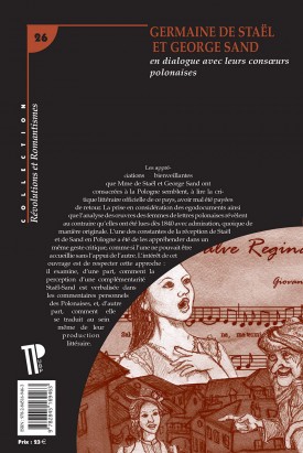 Les appréciations bienveillantes que Mme de Staël et George Sand ont consacrées à la Pologne semblent, à lire la critique littéraire officielle de ce pays, avoir mal été payées de retour. La prise en considération des ego-documents ainsi que l'analyse des œuvres des femmes de lettres polonaises révèlent au contraire qu'elles ont été lues dès 1840 avec admiration, quoique de manière originale. L’une des constantes de la réception de Staël et de Sand en Pologne a été de les appréhender dans un même geste critique, comme si l’une ne pouvait être accueillie sans l’appui de l’autre. L’intérêt de cet ouvrage est de respecter cette approche : il examine, d’une part, comment la perception d’une complémentarité Staël-Sand est verbalisée dans les commentaires personnels des Polonaises, et, d’autre part, comment elle se traduit au sein même de leur production littéraire.