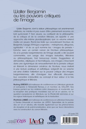 L’objectif de ce volume est ainsi d’attirer l’attention sur le pouvoir critique des images benjaminiennes, afin d’analyser leur efficacité discursive, leur caractère irréductible au concept et leur valeur à la fois philosophique et littéraire.