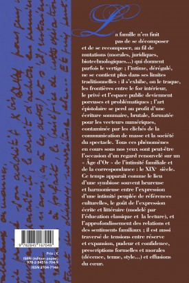 Tous ces phénomènes en cours sous nos yeux sont peut-être l’occasion d’un regard renouvelé sur un « Âge d’Or » de l’intimité familiale et de la correspondance : le XIXe siècle. Ce temps apparaît comme le lieu d’une symbiose souvent heureuse et harmonieuse entre l’expression d’une intimité peuplée de références culturelles, le goût de l’expression écrite et littéraire (modelé par l’éducation classique et la lecture), et l’approfondissement des relations et des sentiments familiaux ; il est aussi traversé de tensions entre réserve et expansion, pudeur et confidence, prescriptions formelles et morales (décence, tenue, style...) et effusions du cœur.