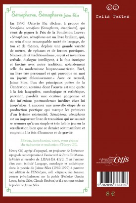 Avec ce recueil, Jaime Siles, l'un des principaux poètes de la Génération novísima dont l'œuvre est une quête à la fois langagière, ontologique et esthétique, parvient, par-delà une écriture gongorine et des inflexions postmodernes inédites chez lui jusqu'alors, à amorcer une nouvelle étape de sa production poétique qui marque les prémices d'un lyrisme existentiel. Sémaphores, sémaphores est un important livre de transition qui ne saurait se résumer qu’à un simple et très habile jeu sur la versification bien que ce dernier soit manifeste et empreint à la fois d’humour et de gravité.