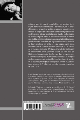 Antigone n'en finit pas de nous habiter. Les versions de ce mythe majeur sont innombrables : les créateurs, qu’ils soient philo-sophes, romanciers, poètes, musiciens ou peintres, ne cessent de se pencher sur le destin de cette vierge sacrificielle dont le nom à lui seul symbolise une révolte. La fascination qu’exerce Antigone tient à la ductilité sémantique du mythe, une ductilité qui confère à ce personnage de la tragédie grecque perpétuellement remodelé une signification toujours actuelle. La figure mythique se prête à « des usages sans cesse nouveaux dans le cadre de nouvelles structures ». Les raisons de la traversée millénaire d’Antigone peuvent aller de l’impact de l’enterrement d’une personne vivante au rôle joué par l’histoire de l’émancipation des femmes dans le rayonnement d’une rebelle exemplaire. Remodeler constamment « l’Antigone dont nous avons besoin aujourd’hui » est une façon de prendre de la distance pour regarder notre propre société et, dans les jours sombres de l’Histoire, de la mettre en cause « sans trop en avoir l’air ».