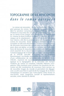 Les études rassemblées dans ce recueil, nées d’une collaboration de recherche entre la SATOR et le CRLMC, montrent de manière convaincante combien la topique et la topographie de la rencontre ont marqué l’histoire du roman et constitué l’identité littéraire européenne. Elles montrent aussi combien les situations de rencontre ont été constitutives de nouveaux liens sociaux ou de nouvelles images du monde et permettent de dégager avec acuité aussi bien la spécificité du langage de la fiction romanesque et narrative que l’articulation entre fiction et non-fiction, entre imaginaire narratif et représentations sociales, entre identité et altérité.