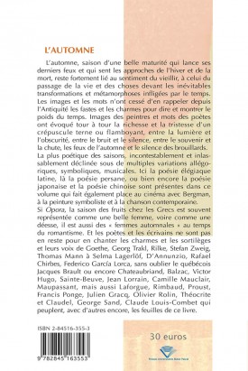 Ici la poésie élégiaque latine, là la poésie persane, ou bien encore la poésie japonaise et la poésie chinoise sont présentes dans ce volume qui fait également place au cinéma avec Bergman, à la peinture symboliste et à la chanson contemporaine.
