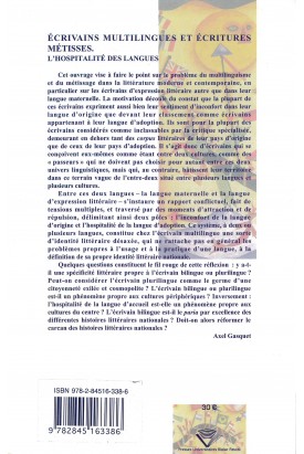 Quelques questions constituent le fil rouge du recueil : y a-t-il une spécificité littéraire propre à l’écrivain bilingue ou plurilingue ? Celui-ci porte-t-il le germe d’une citoyenneté exilée et cosmopolite ? Est-il un phénomène propre aux cultures périphériques ? Inversement : l’hospitalité de la langue d’accueil est-elle un phénomène propre aux cultures du centre ? L’écrivain bilingue est-il le paria par excellence des différentes histoires littéraires nationales ? Devons-nous donc réformer le carcan des histoires littéraires nationales ?