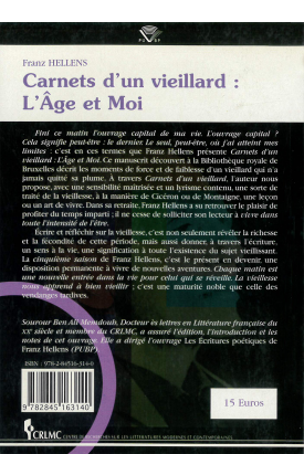 Ces Carnets, inédits jusqu’à présent, proposent une sorte de traité de la vieillesse à la sensibilité maîtrisée et au lyrisme contenu, à la manière de Cicéron ou de Montaigne. Leur sont adjoints quelques courts textes relatifs à la vieillesse, extraits d’autres écrits de Franz Hellens.