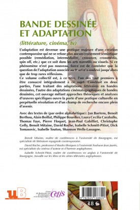 Ce volume collectif est, à ce titre, l’un des tout premiers à être consacré intégralement à ce sujet. Construit en deux parties, l’une traitant des adaptations littéraires en bandes dessinées, l’autre des adaptations cinématographiques de bandes dessinées, cet ouvrage mêlant approches théoriques et analyses d’œuvres spécifiques ouvre la porte d’une pratique culturelle en perpétuelle et d’un champ de recherche encore plein d’avenir.