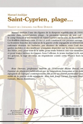 Manuel Andújar, l’une des figures de la diaspora républicaine de 1939, raconte ici la première épreuve de son exil : le camp d’internement français de Saint-Cyprien sur la côte du Roussillon. Ces feuillets crayonnés entre février et avril 1942 constituent le premier ouvrage de celui qui deviendra romancier. La frontière franchie, les vaincus de la guerre civile espagnole se retrouvent enfermés derrière les barbelés, par dizaines de milliers, sous l’œil des gardes mobiles et des tirailleurs sénégalais dépêchés sur les lieux, comme des bêtes, avec pour tout lit le sable, pour toute boisson une eau saumâtre et pour toutes latrines les vagues. Sous l’offense, le jeune Andújar écrit, sur ses genoux, la rage au cœur, un réquisitoire contre cette « France hors la France ». L’on ne trouve, dans cet ouvrage, que peu de données historiques. Le but poursuivi n’est pas d’écrire l’histoire du camp de Saint-Cyprien, même pas celle d’un secteur précis, mais d’appréhender l’effet dévastateur de la concentration et l’effort de résistance des concentrés au processus de « dé-personnalisation » qu’induit le système.