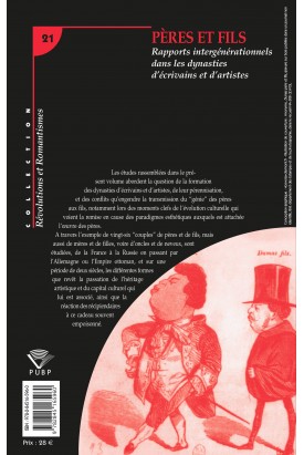 Les études rassemblées dans le présent volume abordent la question de la formation des dynastie d'écrivains et d'artistes, de leur pérennisation, et des conflits qu'engendre la transmission du « génie » des pères aux fils, notamment lors des moments clefs de l’évolution culturelle qui voient la remise en cause des paradigmes esthétiques auxquels est attachée l’œuvre des pères. À travers l’exemple des vingt-six « couples » de pères et de fils, mais aussi de mères et de filles, voire d’oncles et de neveux, sont étudiées, de la France à la Russie en passant par l’Allemagne ou l’Empire ottoman, et sur une période de deux siècles, les différentes formes que revêt la passation de l’héritage artistique et du capital culturel qui lui est associé, ainsi que la réaction des récipiendaires à ce cadeau souvent empoisonné.