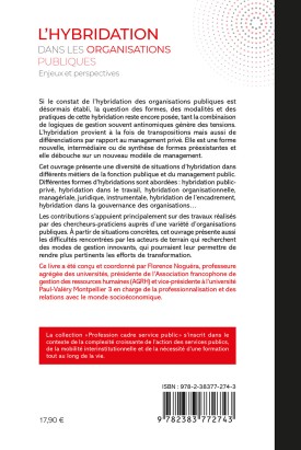 Cet ouvrage présente une diversité de situations d’hybridation dans différents métiers de la fonction publique et du management public. Différentes formes d’hybridations sont abordées : hybridation public-privé, hybridation dans le travail, hybridation organisationnelle, managériale, juridique, instrumentale, hybridation de l’encadrement, hybridation dans la gouvernance des organisations… Les contributions s’appuient principalement sur des travaux réalisés par des chercheurs-praticiens auprès d’une variété d’organisations publiques. À partir de situations concrètes, cet ouvrage présente aussi les difficultés rencontrées par les acteurs de terrain qui recherchent des modes de gestion innovants, qui pourraient leur permettre de rendre plus pertinents les efforts de transformation.