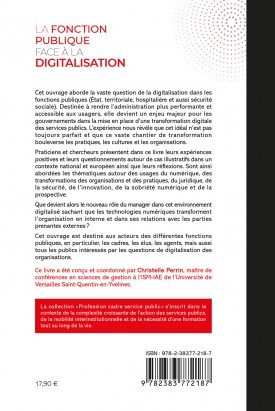 Cet ouvrage est destiné aux acteurs des différentes fonctions publiques, en particulier, les cadres, les élus, les agents, mais aussi tous les publics intéressés par les questions de digitalisation des organisations.