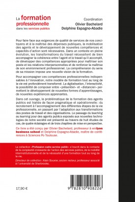 Dans cet ouvrage, la problématique de la formation des agents publics est traitée de façon pragmatique et opérationnelle : du recrutement à l'accompagnement des différentes étapes de la vie professionnelle, en passant par l'adaptation aux transformations des postes de travail et des organisations. Le passage du teaching au learning pour des agents publics exposés aux nouvelles technologies de notre société est présenté au travers de huit études de cas, de quatre éclairages et de trois chapitres de mise en perspective.